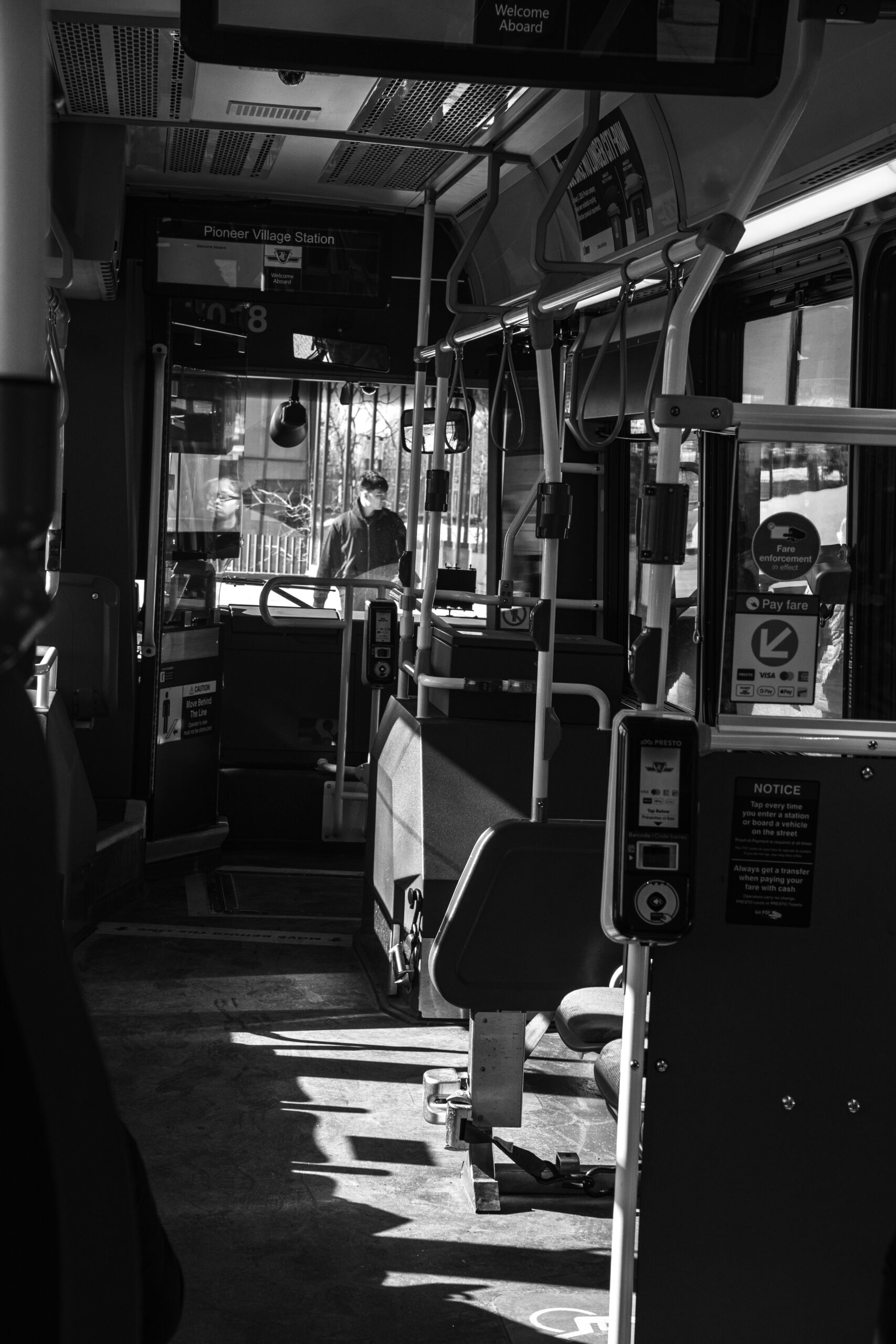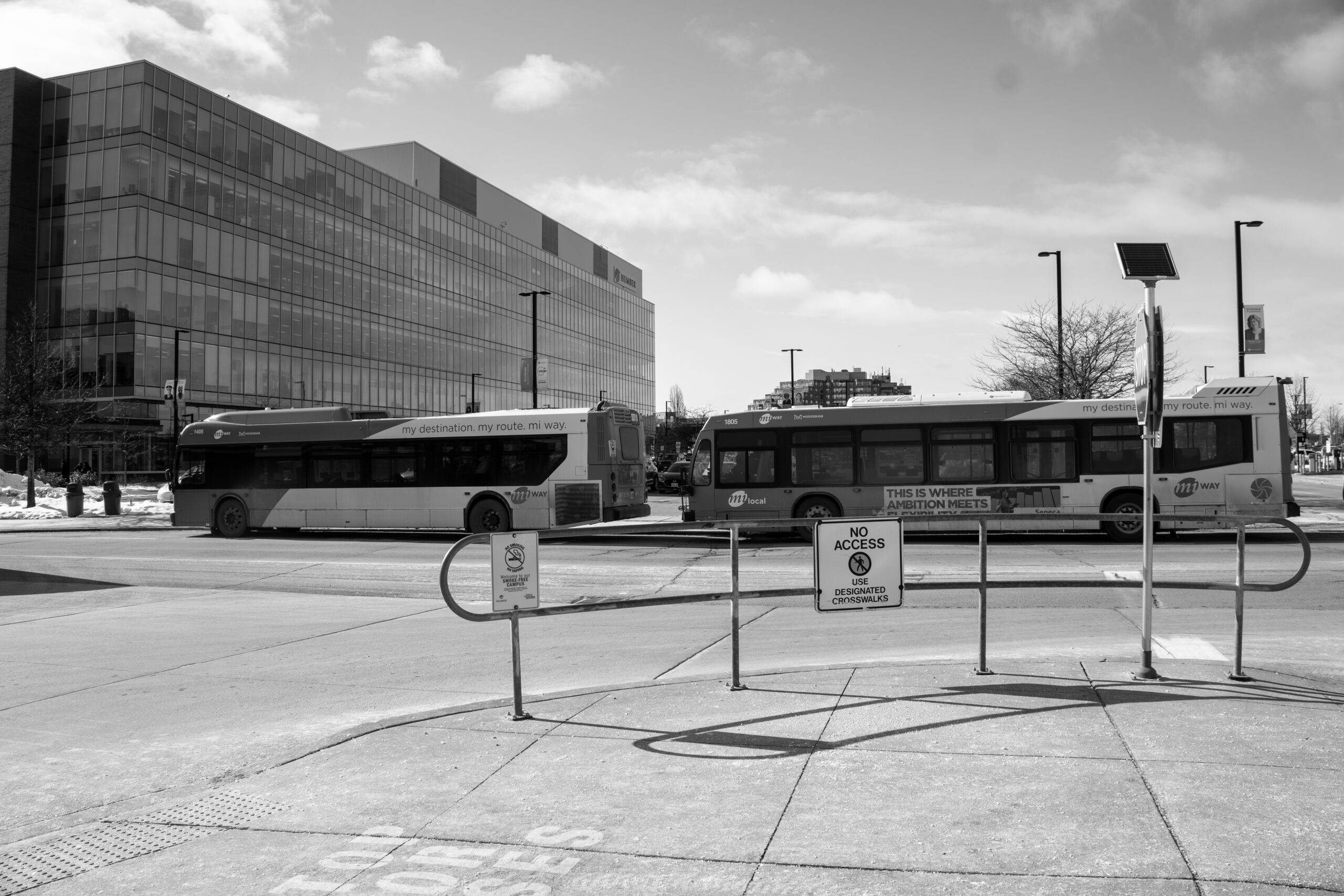 Public Bus arriving at the Humber college terminal.